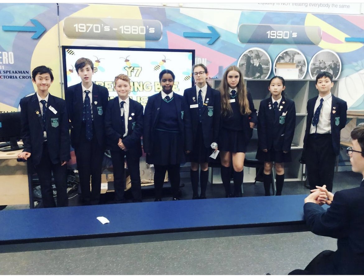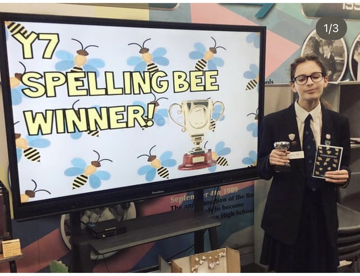 At the end of last year, the English department held its Spelling Bee competition! Each English class completed a spelling test in advance and the winners of this round then competed in the grand final to be crowned as Wellington’s best speller in year 7. The final was a glitzy affair (Mrs Jordan fully embraced the game show host role and wore sequins to bring some sparkle to the occasion, anyway), which tested the nerves and the spelling prowess of the competitors. Each pupil was put on the spot to spell some very tricky words, all of which had featured in their work throughout year 7, such as judicious and pentameter. All of the finalists did brilliantly and got through a number of very tense and testing rounds. Finally, we were down to the final round and our winner was crowned – massive congratulations to Jasmine Hallett of 7F (now 8F), who is the proud owner of the Spelling Bee trophy! And a huge well done to all of our finalists for doing so well and bringing so much fun and enthusiasm to the event!