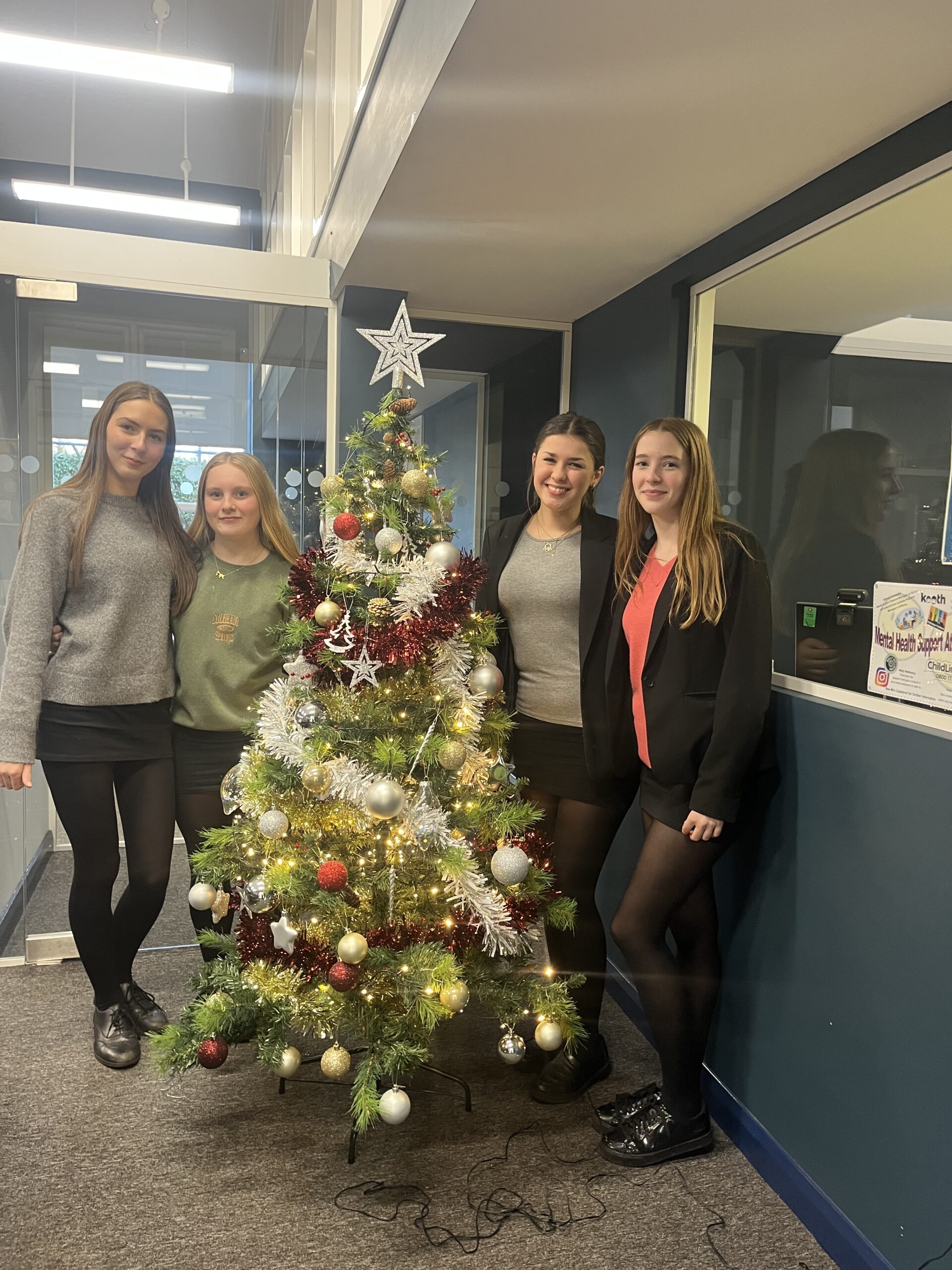 Sixth Formers have been busy decorating our school Christmas trees – one in the main reception, one in the Adshead Hall, one in the Sixth Form Common Room and one in Private Study.