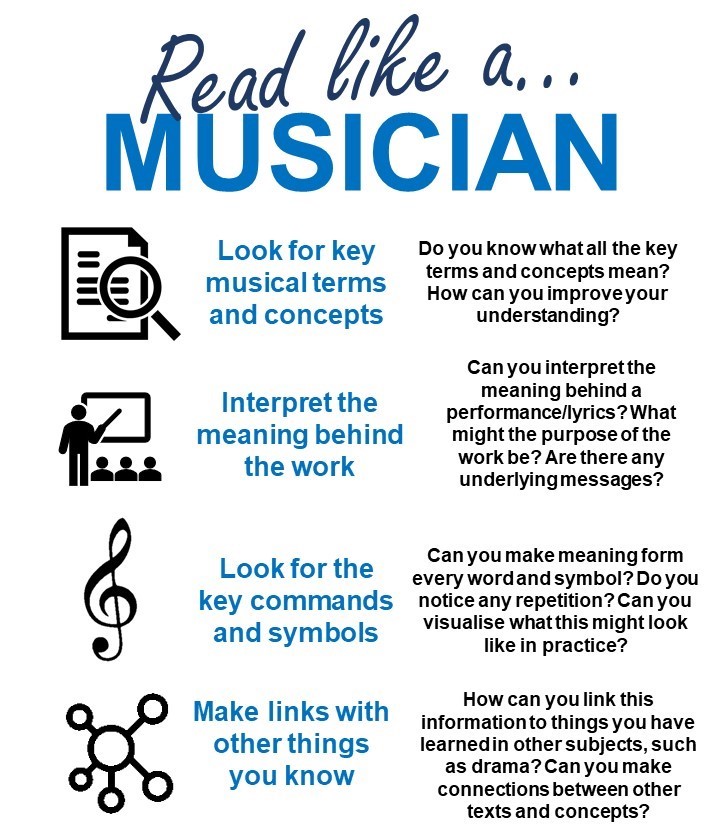 Each subject requires its own disciplinary reading skills to read for meaning. Here are some of the main skills for our Curriculum at Wellington: