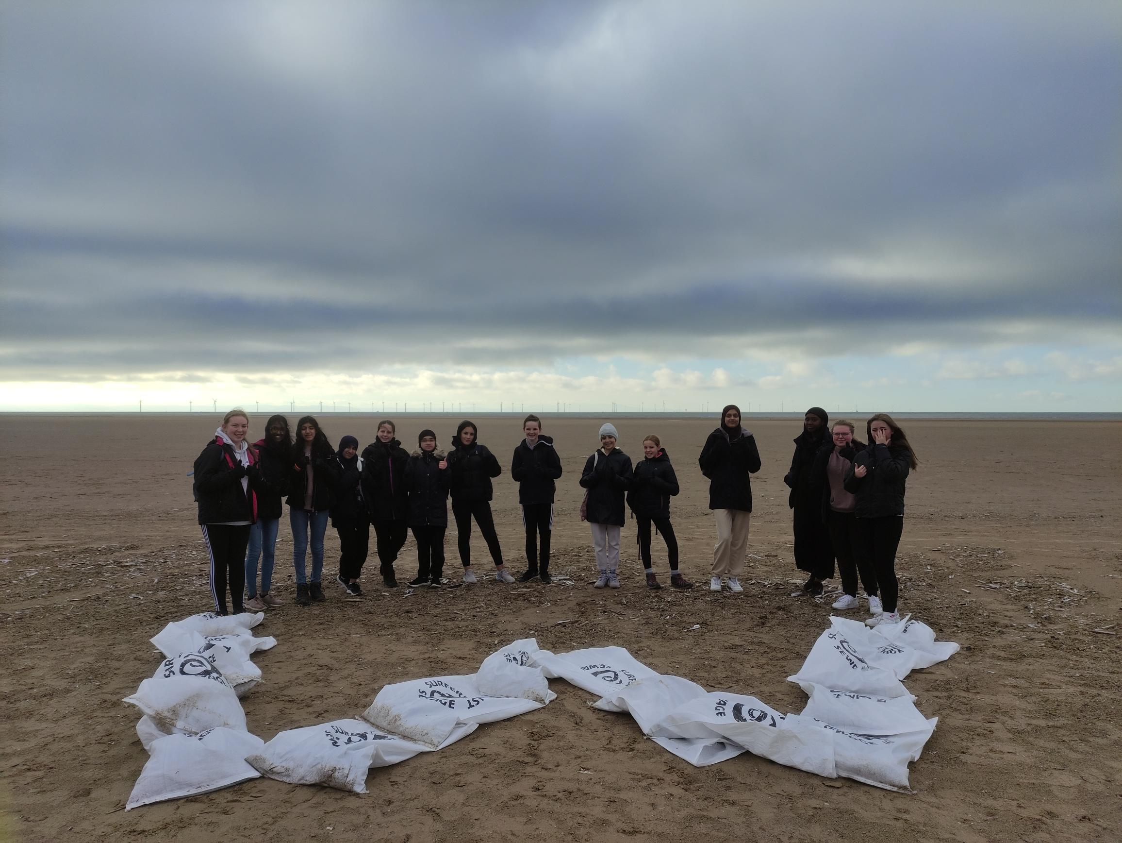 On Wednesday Eco-committee went on their first ever beach clean to Formby Beach. Luckily the rain held off and the 14 students from Year 8, 9, 10 and 12 managed to find lots of litter to pick up. Several members of the public stopped to praise the students and they were a credit to Wellington. The beach clean was such a success that Eco-committee are hoping to plan another one in the Summer term when it is a little bit warmer!