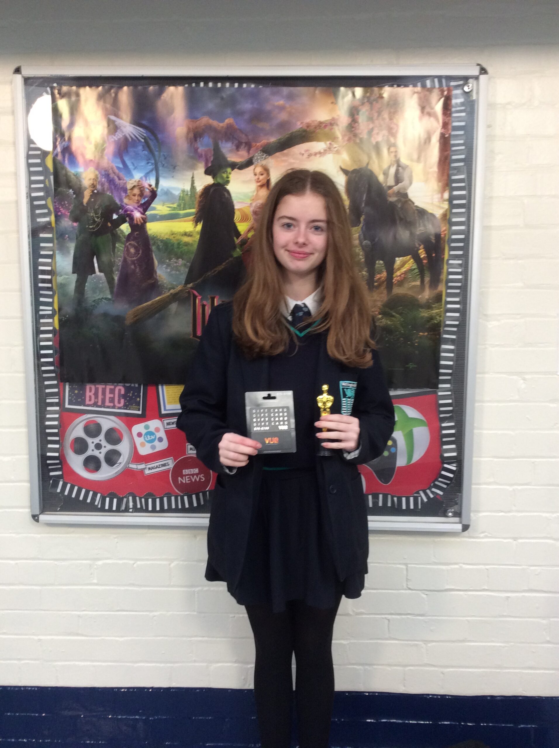 Congratulations to all participants in the Wicked film competition, where the challenge was to create a social media post to promote the film. The Year 12 Film Studies students faced a challenging task in selecting a single winner, and they ultimately chose an outstanding entry from Eden Henderson Y10. Congratulations to Eden who has received a £15 Vue cinema voucher for her efforts. All submissions have been forwarded to the official Into Film competition, so let us all keep our fingers crossed for those involved.