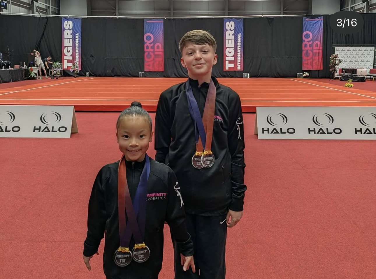 Last weekend, Jensen and his partner Grace took part in a huge international competition. We are thrilled to share that Jensen and Grace exceeded all expectations. They not only moved up to a higher level and executed more difficult skills but also won the combined qualifying rounds and the finals. Their performance was nothing short of spectacular, and they achieved the highest scores in their Aspire category, which is the bridge to FIG. As a result, they both came away with two gold medals each!