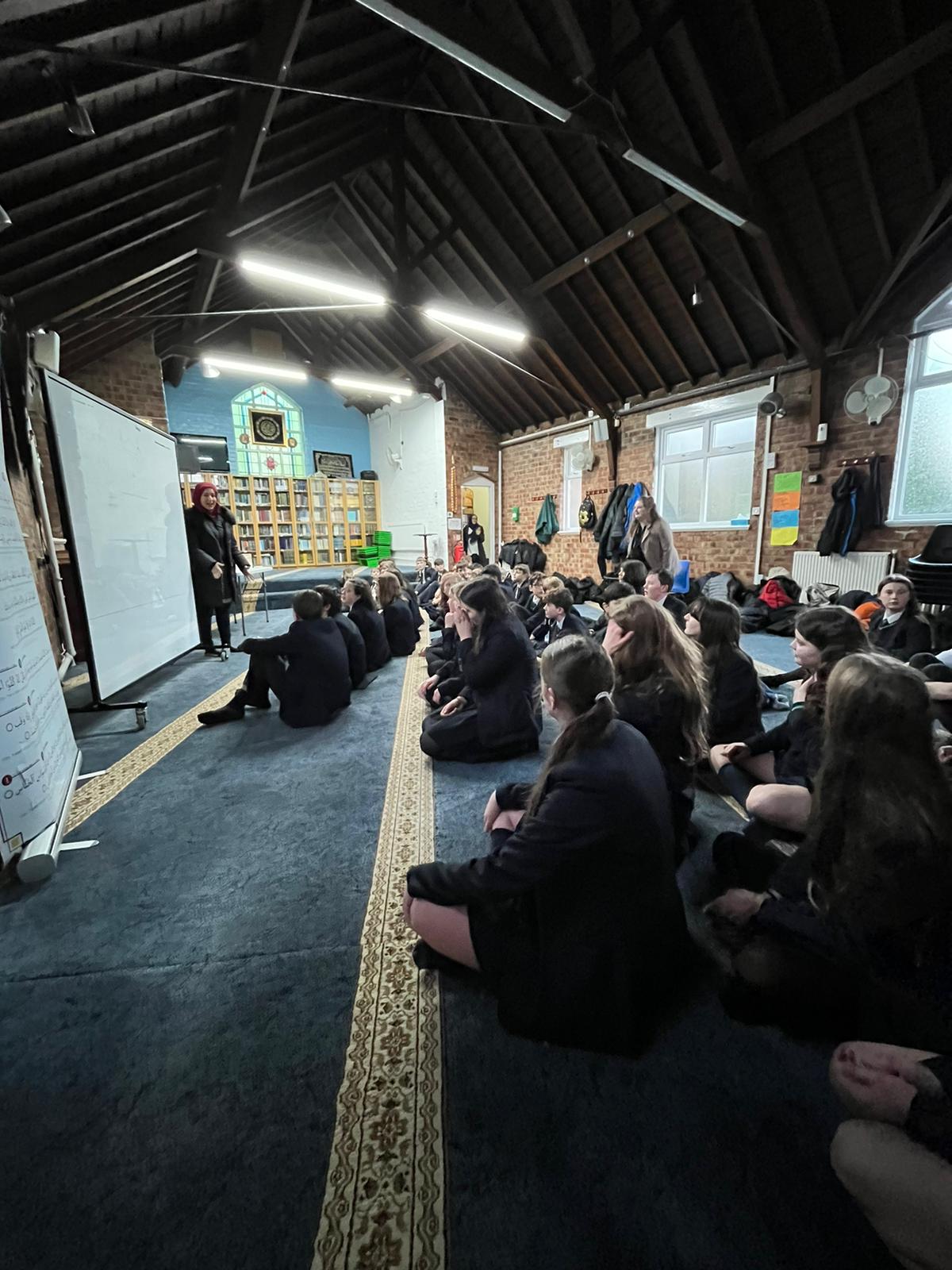 On Monday, Mr Brown, Miss Crump and Miss Hulme, alongside 44 year 8 students, went to the Altrincham and Hale Mosque (after a little walk in the rain). Whilst there they learnt more about the five pillars of Islam and how to write their own names in Arabic.